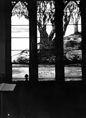 A frost in 1886 killed much of the orange industry in Mandarin and the town saw an economic decline. In 1916, an ornate stained glass window constructed by Louis Comfort Tiffany was installed in the Church of Our Saviour, depicting a large oak tree overlooking the river. The church and Mandarin residents offered no more than $500 for the window; for three years ten cent subscriptions were raised around Mandarin, and notices were placed in New York magazines to solicit finances for it. Although scholars have stated that Stowe's efforts to educate local blacks were ultimately unsuccessful,[25] the woman who spearheaded the fundraising effort for the memorial window noted that the project was enthusiastically supported by local black churches and residents, who gave what they could out of affection for Stowe, remembering that she taught some of them to read. The window probably cost Tiffany $850 ($18,206 in 2009), and though there is no record of exactly how much Tiffany was paid, he took the project on because he liked the design: the tree, the moss, the Southern motif, and because it was to memorialize the Stowes. He probably made no profit from it.[51]