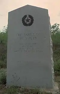 Palo Alto Battlefield National Historical Park near Brownsville, Texas is a National Park Service unit which preserves the grounds of the May 8, 1846, Battle of Palo Alto. It was the first major conflict in a border dispute that soon precipitated the Mexican–American War. The United States Army victory here made the invasion of Mexico possible. The historic site portrays the battle and the war, and its causes and consequences, from the perspectives of both the United States and Mexico.
