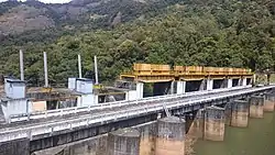 The Lower Periyar Dam (Pambala Dam)[1] is a dam built on the Periyar River as part of the Lower Periyar Hydroelectric Project in Kanjikuzhi Panchayat, Idukki District, Kerala. The dam was built to generate electricity. The lower Periyar dam is at Pambla, five kilometres downstream from where Muthirapuzha merges with main river. This 32.36-metre-high dam made of concrete has a width of 284 meters. The powerhouse is at Karimanal, near Neriamangalam, where three generators are installed with a power production capacity of 60 MW each, or a cumulative 180 MW. The Dam was completed in the year 1998 [2] Taluks through which release flow are Idukki, Kothamangalam, Muvattupuzha, Kunnathunadu, Aluva, Kodungalloor and Paravur.