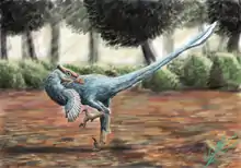 The specimen recovered from the Portezuelo Formation (Río Neuquén Subgroup) of Neuquén Group. It was initially considered to be a juvenile specimen of another dromaeosaurid species, Neuquenraptor argentinus.[1] However, it was later re-interpreted as a new genus and named Pamparaptor by Juan D. Porfiri, Jorge O. Calvo and Domenica dos Santos in 2011 and the type species is Pamparaptor micros. The generic name honors Indian Pampas people who lived in central Argentina while "raptor" means "robber" in Latin. The specific name (micros, meaning "small") refers to the specimen's size (estimated at 0.5 to 0.7 metres (1.6 to 2.3 ft) in length).[2]