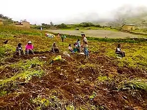 The cultivation lands are conducted individually; Such plots have extensions from approximately 0.05 to 1 hectare. While natural pasture areas belong 40% to private owners and 60% are for joint use by the beneficiaries. The potential of agricultural area is 600 ha; which are currently used by 20% due to the lack of water resources. Situation that needs improvement with the implementation of irrigation projects, with the use of water for irrigation from springs in forest areas and zones; afforestation that at the same time will allow greater infiltration of rainwater to the subsoil, as well as improving the microclimate in this area.[43]