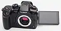 The body is made of a magnesium alloy, and it has a fully articulable monitor with touch screen functionality as well as an electronic viewfinder and a hot shoe for a flash light.[1]