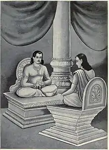 Panchashikha, who appears in Shanti Parva (Book of Liberation) of Mahabharata (Chapter 218), was a long-lived disciple of Asuri who was a teacher of Samkhya Philosophy. As a follower of Kapila, Panchshikha was one of the earliest teachers of philosophy belonging to the Samkhya School of thought.[1] He wrote a great number of works including 60000 verses concerning the nature of matter (Prakṛti), the nature of the self, the faculties of perception and action and supra normal powers. Shashti Tantra is believed to be his work. Uluka, nicknamed Kanada, the author of Vaisheshika Sutra and who taught Krishna, was a disciple of Panchashikha.[2]