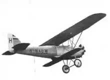 - A three-engined, three-seat, low-wing mail plane. Only one was built, which was destroyed in a taxiing accident during the 1934 MacRobertson Air Race between London and Melbourne.