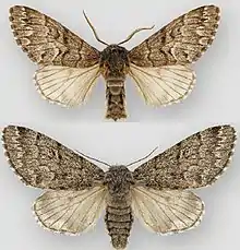 | Panthea virginarius male (top), female (bottom) | |