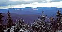 Panther's forests are for the most part typical of the Catskills, with beech-birch-maple northern hardwood forests on its lower slopes giving way to boreal forests of balsam fir and red spruce above 3,500 feet (1,100 m) on the mountain. While the lower slopes were logged in the 19th century, particularly for Eastern hemlock bark and its tannin, the upper mountain remains in first growth. According to Catskill forest historian Michael Kudish, there is a rare virgin spruce grove near the summit. There are also two open areas visible from the summit on a knob known as Beech Flat, one of about 2 acres (0.81 ha) at 2,740 feet (840 m) and another of 5–7 acres (2.0–2.8 ha) at 2,848 feet (868 m), are totally natural, resulting from the absence of soil in those areas.[5]