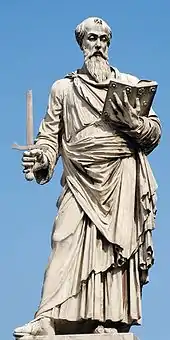 Saint Paul by Paolo Romano (c. 1460), entrance of the Ponte Sant'Angelo, Rome.