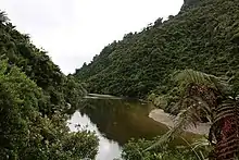 Rivers flowing from the Paparoa Ranges pass through the limestone syncline, creating subterranean waterways and extensive cave systems that are one of the features of the park.[3] The main rivers are the Fox, Pororari and Punakaiki. Another of the rivers is Cave Creek, site of the 1995 Cave Creek disaster. Cave Creek is fed by a complex cave system.
