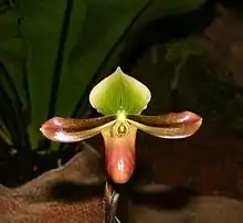 Paphiopedilum mastersianum is a species of orchid occurring from the Lesser Sunda Islands to Maluku.