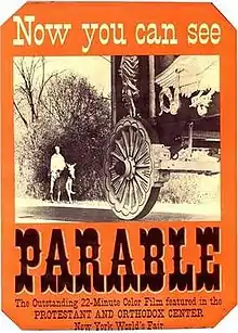 Parable is a 1964 American short Christian film written and directed by Rolf Forsberg, made for the Lutheran Council and became popular when first screened at the 1964 New York World's Fair in 1964,[1] and again in 1965 at the Protestant Pavilion.[2][3] The film depicts Christ as a clown and the world as a circus and is considered both a revolutionary Christian film and one which proved to be influential.[4][5][6]