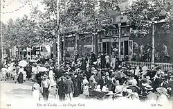 Itinerant fairs housed in temporary structures such as the Circus Corvi made seasonal appearances along the boulevards of Paris. Seurat's interest in these fairs produced several studies in anticipation of Parade de cirque, including a series of cafe-concert performances, performing saltimbanques or acrobats.[5] The name Fernand Corvi appears on Seurat's small sketch for the ticket window.[5]