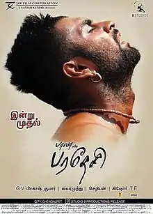 Paradesi (transl. Vagabond) is a 2013 Indian Tamil-language period drama film written and directed by Bala[2][3] starring Atharvaa, Vedhika and Dhansika.[4][5] The film's music was scored by G. V. Prakash Kumar.[6] The film was based on novel Eriyum Panikadu, Tamil translation of the 1969 English novel Red Tea by Paul Harris Daniel and inspired from real life incidents that took place before independence in the 1930s.[7][8] It was released on 15 March 2013. The dubbed version of Telugu was released with the same name. The film opened to critical acclaim[9]but was an average grosser at the box office.