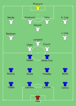 In their fourth consecutive World Cup appearance, Paraguay eventually reached the quarter-finals. Drawn into Group F along with defending champions Italy, Slovakia and New Zealand, they opened their tournament with a draw against the Italians, holding them 1–1 thanks to a first-half goal from Antolín Alcaraz. In their second match, they beat Slovakia 2–0 with goals from Enrique Vera and Christian Riveros. Their final group match saw a goalless draw with New Zealand, clinching first place in Group F and setting up a date with Japan. Another goalless draw with the Japanese after 120 minutes went to penalties, which Paraguay won 5–3, advancing them for the first time in their history to the World Cup round of eight. In the quarter-finals, they met powerhouses Spain, to whom they lost 1–0 in a game where a goal by Nelson Valdez was controversially called an offside by the referee. The game also featured each team being awarded a penalty, both of which were contained, first by Spain's Iker Casillas and then Paraguay's Justo Villar (both were also team captains for the game).