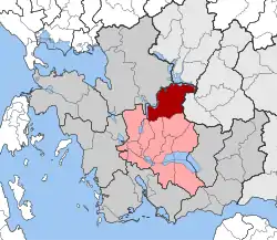 Parakampylia (Greek: Παρακαμπύλια) is a former municipality in Aetolia-Acarnania, West Greece, Greece. Since the 2011 local government reform it is part of the municipality Agrinio, of which it is a municipal unit.[2] The municipal unit has an area of 231.282 km2.[3] Population 1,943 (2011). The seat of the municipality was in Agios Vlasios.