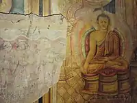The Vihara complex mainly consists of two terraces. The lower terrace includes the Stupa, Bodhi tree, dripledged rock caves, Bikkhu dwellings, the main image house and the bell tower. Another small image house, a Stupa and a rock carved foot print of Buddha are found in the upper temple premises.[4] The main image house of the lower terrace is adorned with paintings and sculptures belonging to the Kandyan tradition as well as the new art style.