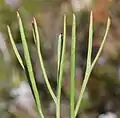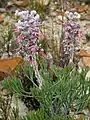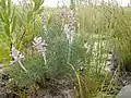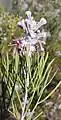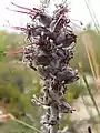 The shrub grows up to 1.5 m (4.9 ft) tall and flowers mainly from August to November. Fire destroys the plant but the seeds survive. The plant is bisexual and pollinated by insects. The fruit ripens, two months after flowering, and the seeds fall to the ground where they are spread by ants.