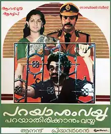 Parayanumvayya Parayathirikkanumvayya (transl. Can't say and can't say not to) is a 1985 Indian Malayalam-language crime drama film directed by Priyadarshan and written by Cochin Haneefa. It is a remake of the 1975 Hindi-language film Faraar. The movie starred Mammootty, Shankar, and Menaka.[1][2][3]