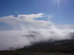 Although the highest hill, Tuchen Gador, is only 384 meters high, it is easy to get lost. Low fog is frequent between the hills and above the swamps. The Monts are very irregular. The sharp rocks of Tuchen Gador create a striking contrast to the rounded hills of the Mont Saint Michel de Brasparts.[2] Hiking on the Monts can be treacherous because of the ever-changing weather and the uneven and marshy ground.