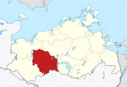 Parchim is a former Kreis (district) in the southwestern part of Mecklenburg-Western Pomerania, Germany. Neighboring districts were (from the north clockwise) Nordwestmecklenburg, Güstrow, Müritz, the district Prignitz in Brandenburg, the district Ludwigslust and the district-free city Schwerin. The district was disbanded at the district reform of September 2011. Its territory has been part of the Ludwigslust-Parchim district since.