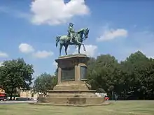The last relevant monument built in the Cascine Park was the Monumento all'Indiano a monument realised by the English sculptor Fuller in honour of the young Indian (Maratha) prince His Highness Rajaram II, Maharaja of Kolhapur, who suddenly died while visiting Florence in 1865.[3]
