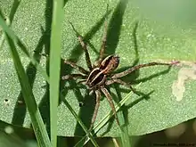 Pardosa agrestis is the dominant surface-dwelling spider species in farming grounds in Central Europe and certain areas in North America and Asia.[1]