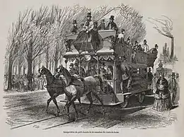 From 1828 to 1855, Parisian public transport was provided by private companies that operated large horse-drawn wagons with seats, a vehicle called an omnibus. The omnibuses of each company had distinct liveries and picturesque names: the Favorites, the Dames Blanches, the Gazelles, the Hirondelles, the Citadines. They served only the city center and wealthier areas, ignoring the working-class areas and the outer suburbs of the city. In 1855, Napoleon III's prefect of police, Pierre-Marie Piétri, required the individual companies to merge under the name Compagnie général de omnibus. This new company had the exclusive rights to provide public transport. It established 25 lines that expanded to 31 with the annexation of the outer suburbs, about 150 kilometers in total length. A ticket cost 30 centimes and entitled the passenger to one transfer. In 1855, the company had 347 cars and carried 36 million passengers. By 1865, the number of cars had doubled and the number of passengers had tripled.[27]