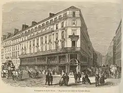 The Café Riche, located at the corner of the Rue Le Peletier and the Boulevard des Italiens, was richly decorated by its owner, Louis Bignon, with a marble and bronze stairway, statues, tapestries, and velour curtains. It was the meeting place of bankers, actors, actresses, and successful painters, journalists, novelists, and musicians. The upstairs rooms were the meeting places of the main characters in Émile Zola's novel La Curée.