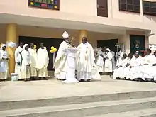On 11 June 2006, the St. Sylvanus[7] was elevated to a rectorate and the first Parochial Administrator Fr. George Ekow Mensah and his Vicar Fr. Albert Gyapaning celebrated mass in the church. Fr. Albert Gyapaning had a short stay and was transferred to St. Theresa's Catholic Church, Kaneshie. Fr. Peter Hesse was the next vicar to work in the parish and later came Fr. Nicholas Dzikunu. Joseph Arthur Akado was son of the first catechist who has been a catechist of the church since the late 1970s to date and was made Extra Ordinary Minister of the Holy Eucharist.