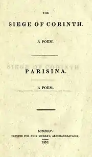 Parisina is a 586-line poem written by Lord Byron. It was probably written between 1812 and 1815, and published on 13 February 1816.