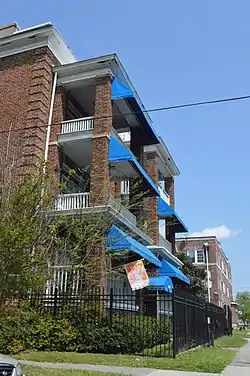 The Park Place Historic District is a national historic district listed on the National Register of Historic Places in 2005 and enlarged in 2017.[1] It encompasses 1,525 contributing buildings, 2 contributing sites, and 5 contributing structures in the Park Place neighborhood of Norfolk. It is an example of streetcar suburban development in Norfolk during the late 19th and early 20th centuries. The neighborhood includes a variety of commercial, residential, industrial, and institutional buildings in a variety of popular styles including the Queen Anne and Shingle Style. Notable buildings include Batchelder and Collins (1904), J. W. Gamage and Son (1910), National Linen Service (1941), Best Repair Company (1938), Rosna Theater (1942), Newport Plaza and Theater (1930), Park Place Baptist Church (1903), Church of the Ascension (1915), Christian Temple (1922), Park Place Methodist Church (1949), Knox Presbyterian Church (1940), the Touraine (1915), Colonial Hall Apartments (1925), and Camellia Court (1914).[4]