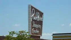 ![]() The original 1956 Park Road Shopping Center billboard has an Art Deco feel and stands at the southeast end of the mall | |