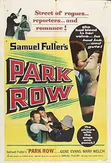 Park Row is a 1952 American film noir drama film starring Gene Evans as a New York City journalist who founds a new type of newspaper in the 1880s and Mary Welch as the established publisher who opposes him. It was written, directed, produced and financed by Samuel Fuller, himself a New York reporter prior to turning to filmmaking. It was his favorite film,[3] though it did not do well at the box office.