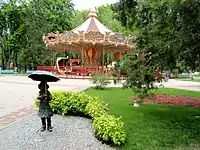 A statue of Maxim Gorky was located near the entrance of the park from 1980 until 1999.[2] It was restorated in 2006, but replaced by a glass squirrel sculpture in 2011.[2]