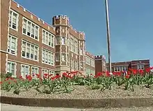 Parkersburg High School was one of the first high schools in the state of West Virginia. The school was founded in 1867, originally located in downtown Parkersburg. The current building housing PHS has a Tudor Style architecture with three stories. It was designed by noted Ohio architect Frank Packard (1866–1923), and built in 1917, making it one of the oldest school buildings in West Virginia. It remains the largest high school campus in the state. Later additions included Stadium Field and the Field House, a multi-story gymnasium.[6] It is located in the Parkersburg High School-Washington Avenue Historic District, listed on the National Register of Historic Places in 1992.[7]