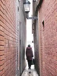 Parliament Street is a 50-metre (160 ft) long street in the city of Exeter, Devon, England. It links the High Street to Waterbeer Street and dates from the 14th century. At about 0.64 metres (2 ft 1 in) at its narrowest and approximately 1.22 metres (4 ft 0 in) at its widest, it has been claimed to be the world's narrowest street,[1] although this title officially belongs to the Spreuerhofstraße in Reutlingen, Germany.[2]