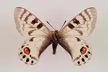 Parnassius charltonius, the regal Apollo, is a high-altitude butterfly which is found in India. It is a member of the snow Apollo genus (Parnassius) of the swallowtail family (Papilionidae). This handsome butterfly is found at altitudes from 9,000 to 13,000 feet (2,700 to 4,000 m) from Chitral to Kumaon.
