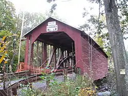 The Parr's Mill Covered Bridge No. 10 is a historic wooden covered bridge located at Cleveland Township and Franklin Township in Columbia County, Pennsylvania. It is a 84.25-foot-long (25.68 m), Burr Truss arch bridge with a tarred metal roof constructed in 1865. It crosses the North Branch of Roaring Creek. It is one of 28 historic covered bridges in Columbia and Montour Counties.[2]