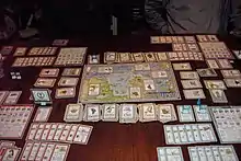 Components include a game board, 6 reference cards, 18 counters and 440 cards.