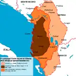 The borders of the Principality of Albania established in 1913 left a large number of ethnic Albanians outside the new state, and many of them fled or were forcibly driven inside the recognized borders of Albania.[21] In Kosovo, Serbian troops attempted to alter the demographic makeup of the region through mass expulsions. Over 100,000 Albanians emigrated from Kosovo during 1918-1941.[22][23]