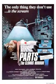 Parts: The Clonus Horror, also known as The Clonus Horror, or simply Clonus, is a 1979 science fiction horror film directed by Robert S. Fiveson. It stars Peter Graves, Tim Donnelly, Dick Sargent, Keenan Wynn, Paulette Breen, and Frank Ashmore. The film is about an isolated community in a remote desert area, where clones are bred to serve as a source of replacement organs for the wealthy and powerful. The film won a Saturn Award at the 7th Saturn Awards, nationally televised in July 1980, in the category Best Film Produced for Under $1,000,000.