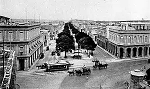 Construction of the first European-style boulevard in Havana, the first street of its type outside the city walls, was proposed by Don Felipe Fons de Viela y Ondeano in 1770, and work was completed in the mid-1830s during the term of Captain General (Spanish: Capitanía General de Cuba) Miguel Tacón y Rosique (1834–1838)[lower-alpha 2] who was also responsible for the Paseo de Tacón, the Plaza del Vapor and the Tacón Theatre.
