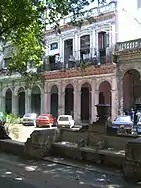 Lining the boulevard are important buildings such as the Gran Teatro de La Habana, hotels (including the Hotel Sevilla), cinemas such as the Fausto , theaters, and mansions imitating styles from Madrid, París and Vienna. El Prado was the first paved street in Havana. When El Capitolio was built in 1929 that section of the promenade was removed.[1]