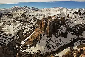 ![]() Monjes Blancos, mountain landmark adjacent to the Pehuenches pass, in San Clemente, Chile. | |