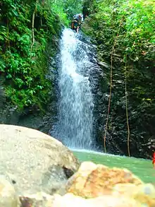 The Pasonanca Natural Park covers an area of 12,107 hectares (29,920 acres) and a buffer zone of 5,307 hectares (13,110 acres) in the southern end of the Zamboanga Cordillera mountain range that runs north to south serving as the backbone for the peninsula of Zamboanga. It is contained within the local government areas of Pasonanca, Lunzuran, Lumayang Cacao, Lapacan, Lamisan, Bungiao, La Paz, Balurno and Dulian in Zamboanga City and parts of the municipality of Sibuco in Zamboanga del Norte.[1][4] Mount Pulong Bato is a prominent peak located within the park rising to 360 metres (1,180 ft). It is crossed by Tumaga River and its tributaries which serve the bulk of the water supply for the Zamboanga City Water District through a diversion dam.[3] The park also contains several rock formations, springs and waterfalls including the Dulian Falls.