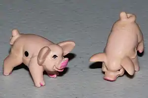 Pass the Pigs is a commercial version of the dice game Pig, but using custom asymmetrical throwing dice, similar to shagai. It was created by David Moffatt and published by Recycled Paper Products as Pig Mania! in 1977. The publishing license was later sold to Milton Bradley and the game renamed Pass the Pigs. In 1992, publishing rights for North America were sold to Winning Moves Games USA, which acquired the game outright from David Moffat Enterprises in early 2017.[3]