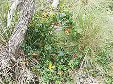 The seeds of P. cinnabarina are spread by birds and possibly mammals and the plant has become an environmental weed in Victoria, Tasmania and New Zealand.[10]