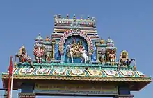 On an ordinary day, visitors could see all the mounts of the deities parked inside the temple premises in the pillared halls. visitors could also see permanent huge pillars cut out of single granite rocks standing in front of the temple as it serves to put huge pandal in front of the temple during festivities. These pillar rocks are very old and few of them has paved way to concrete pillars.