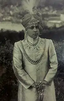 44) RAJ RISHI Rao Sahib UDAYA SINGHJI, Rao of Patan 1914/-, born 28 April 1892, he succeeded by adoption in 1914 ; married firstly, Rani Sahib Kanwar of Mandwa and secondly 1928 in Kathmandu, Rani Trilokya Rajya Lakshmi Kumari, daughter of Gen. HH Shri Tin Maharaja Mohun Shamsher Jung Bahadur Rana of Nepal, Prime Minister of Nepal, and had issue. Mohan Shumsher Jang Bahadur Rana