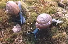 Snails are usually exploited as a food source by other animals. A common carnivorous land snail, Haplotrema concavum, was observed eating a noonday globe snail, and gnawed shells of the other subspecies of this snail, Patera clarki clarki, have been found in the dens of small rodents.