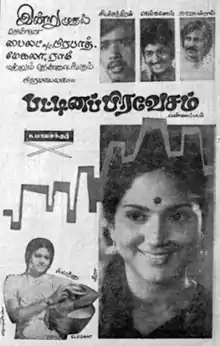 Pattina Pravesam (transl. Entering a City)[3] is a 1977 Indian Tamil-language drama film written and directed by K. Balachander. It is based on the play of the same name, written by Visu and staged the same year. The film stars Delhi Ganesh, Sivachandran and Sarath Babu, all making their cinematic acting debuts. It was released on 9 September 1977.
